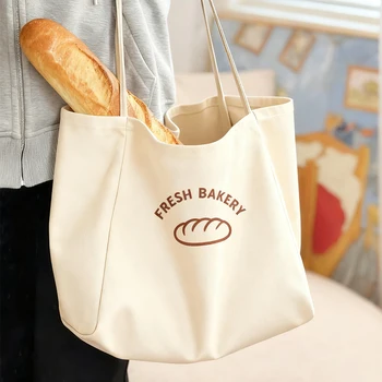 BSCI Custom Logo Printing Extra Large Capacity Ins Korea Style Eco-friendly Shopping Canvas Tote Bag for Supermarket Shopping