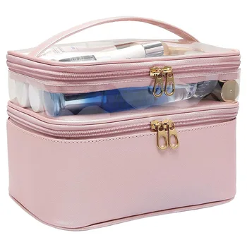High Quality Double Layer Makeup Bag for Travel Large Makeup Organizer Case for Full Size Cosmetics Bag Small Makeup Bag BSCI