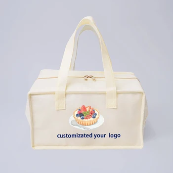 Promotional Custom Logo Summer Ice Cream Cake Insulated Thermal Box Reusable Zipper Foldable Non-Woven Lunch Cooler Bag for Food