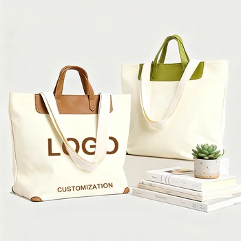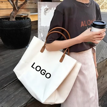Eco-Friendly Large Capacity Canvas Tote Bag with Custom Logo Fashionable Work Commuting Shoulder Strap Rope Handle for Shopping