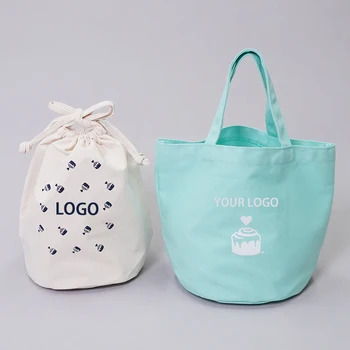 2025 Medium Cotton Canvas Square Bag Portable Dust-Proof Custom Letter Logo Eco-Friendly Reusable for Daily Use Handled Printing