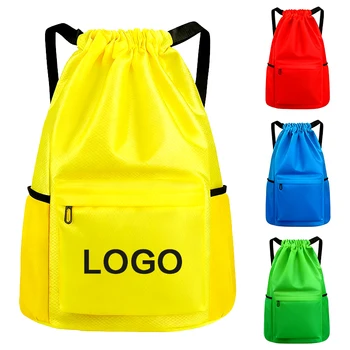 High Quality Polyester Draw String Custom Sports Backpack Gym Bag Waterproof Promotional Fitness Drawstring Bags with Logo