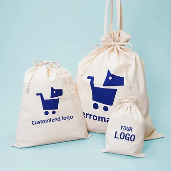 High Quality Wholesale Eco-Friendly Foldable Cotton Canvas Tote Drawstring Shopping Bag with Handle Custom Logo Plain Pattern