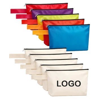 High Quality Customizable Blank Canvas Zipper Pencil Case Makeup Bag Polyester Bulk Cosmetic Pouch for Travel Multi-Purpose