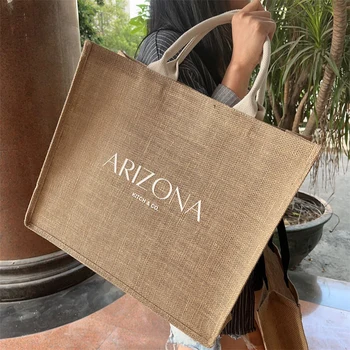Promotional Custom Logo Printing Extra Large Natural Reusable Burlap Jute Grocery Tote Linen Bag With Logos Vintage Style